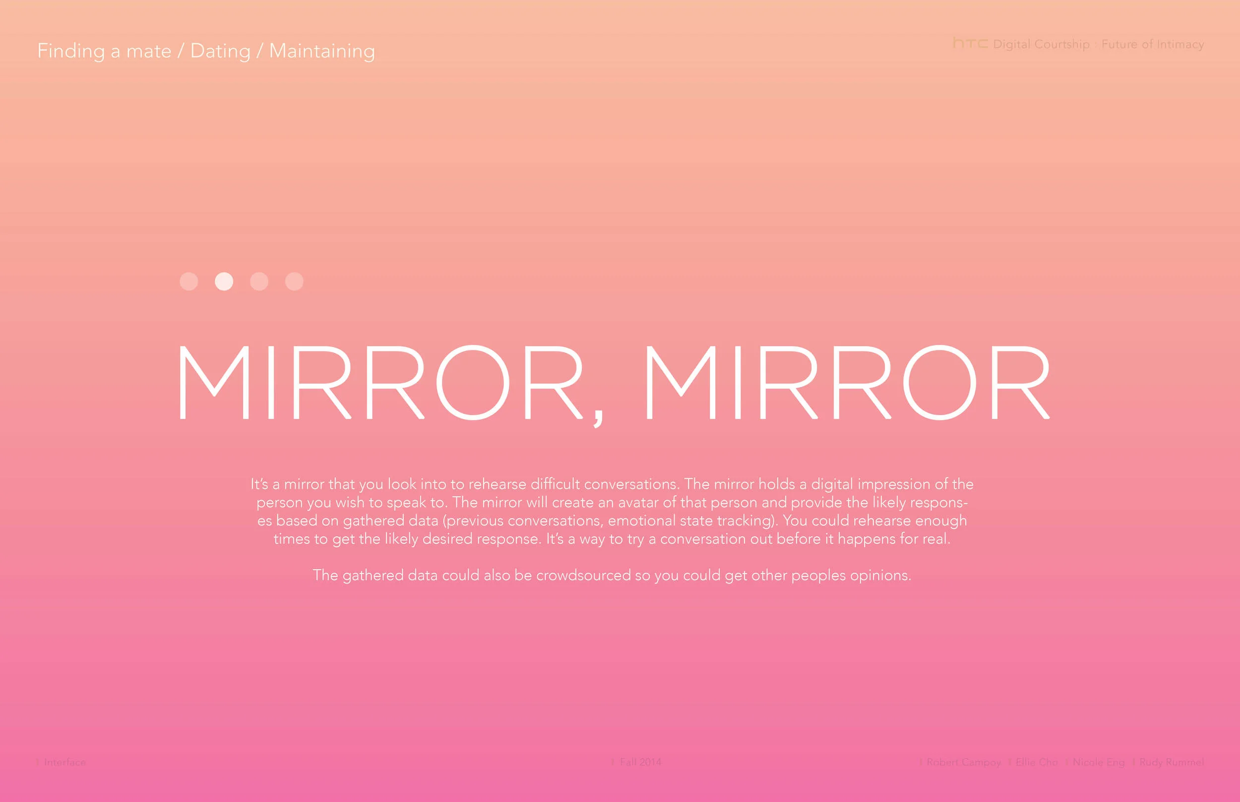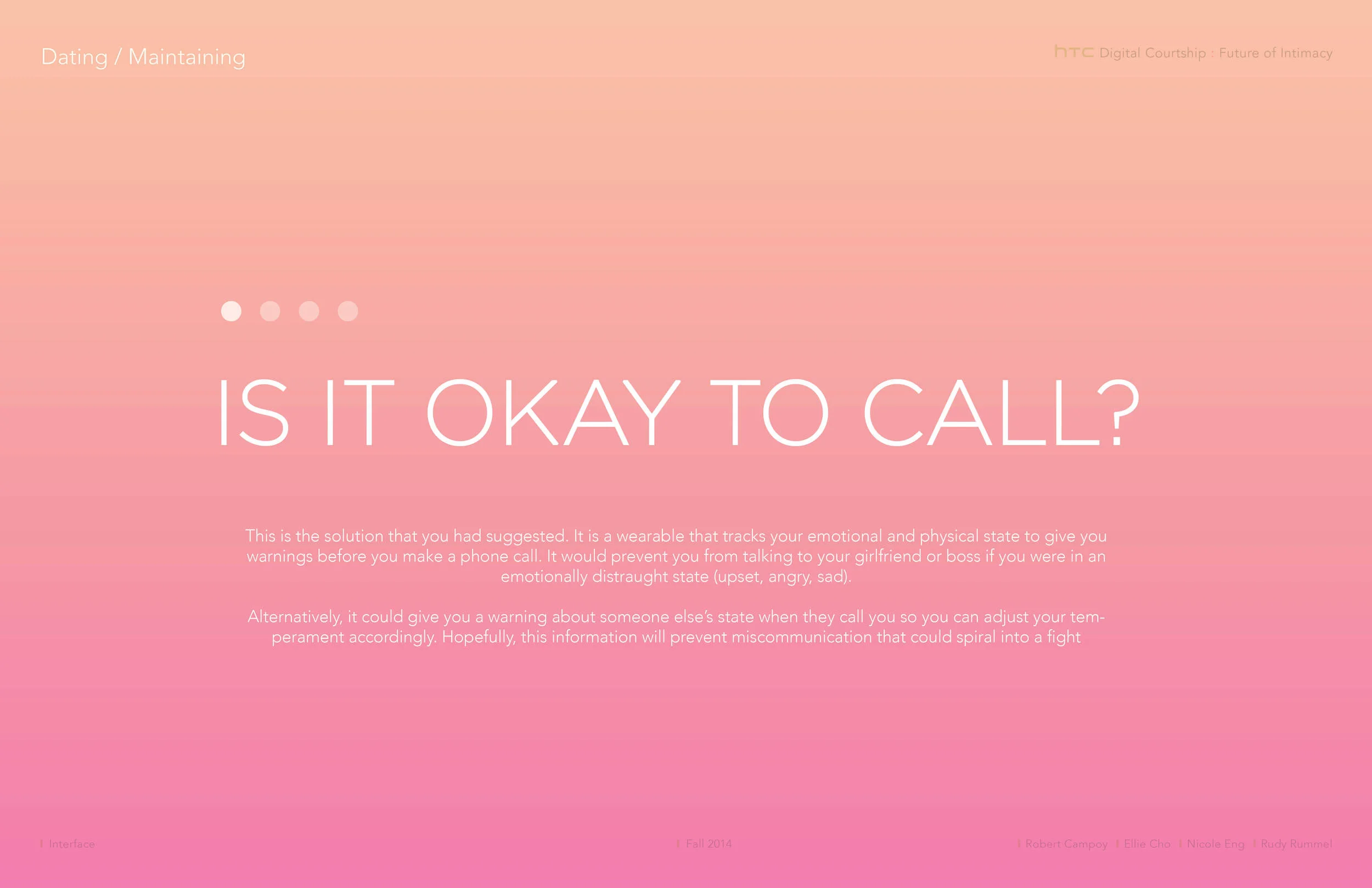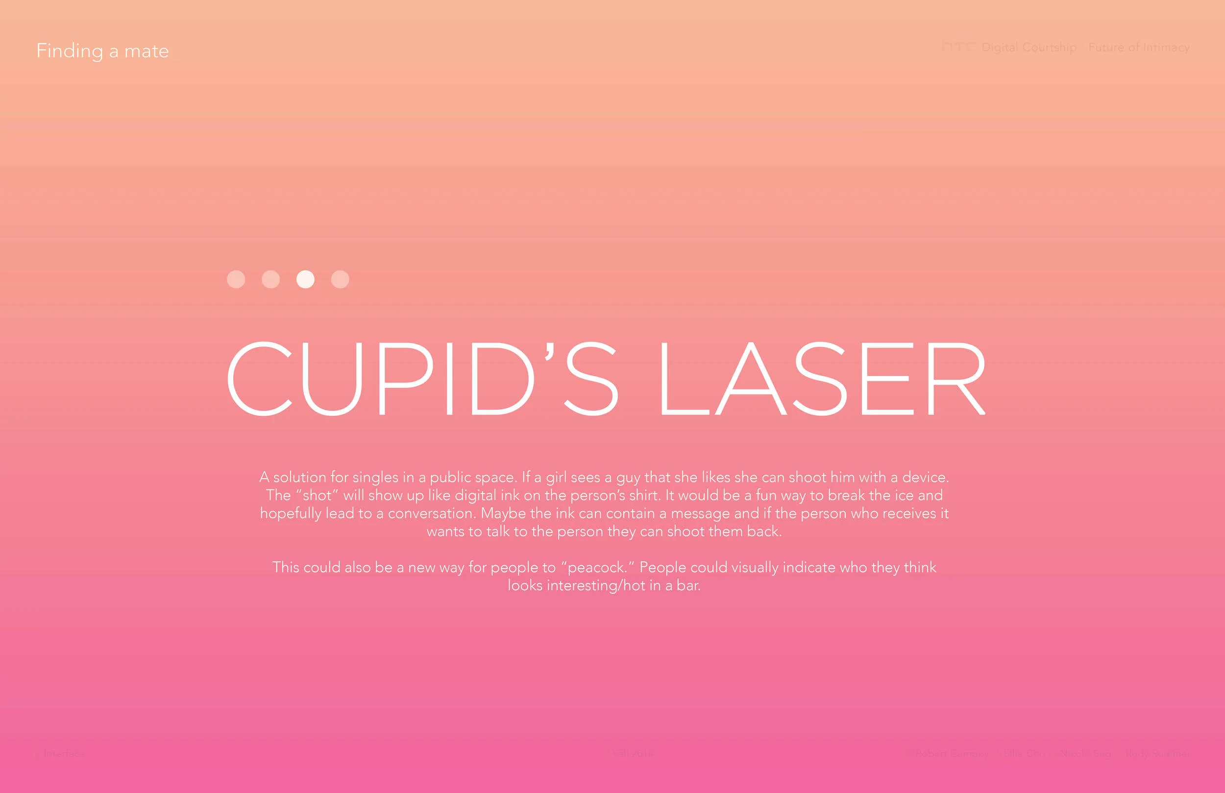 Midway through our project we were developing two distinct concepts: Crush and PIQ. PIQ was a set of twin wearable devices that connected partners by giving insights into how the other was feeling.